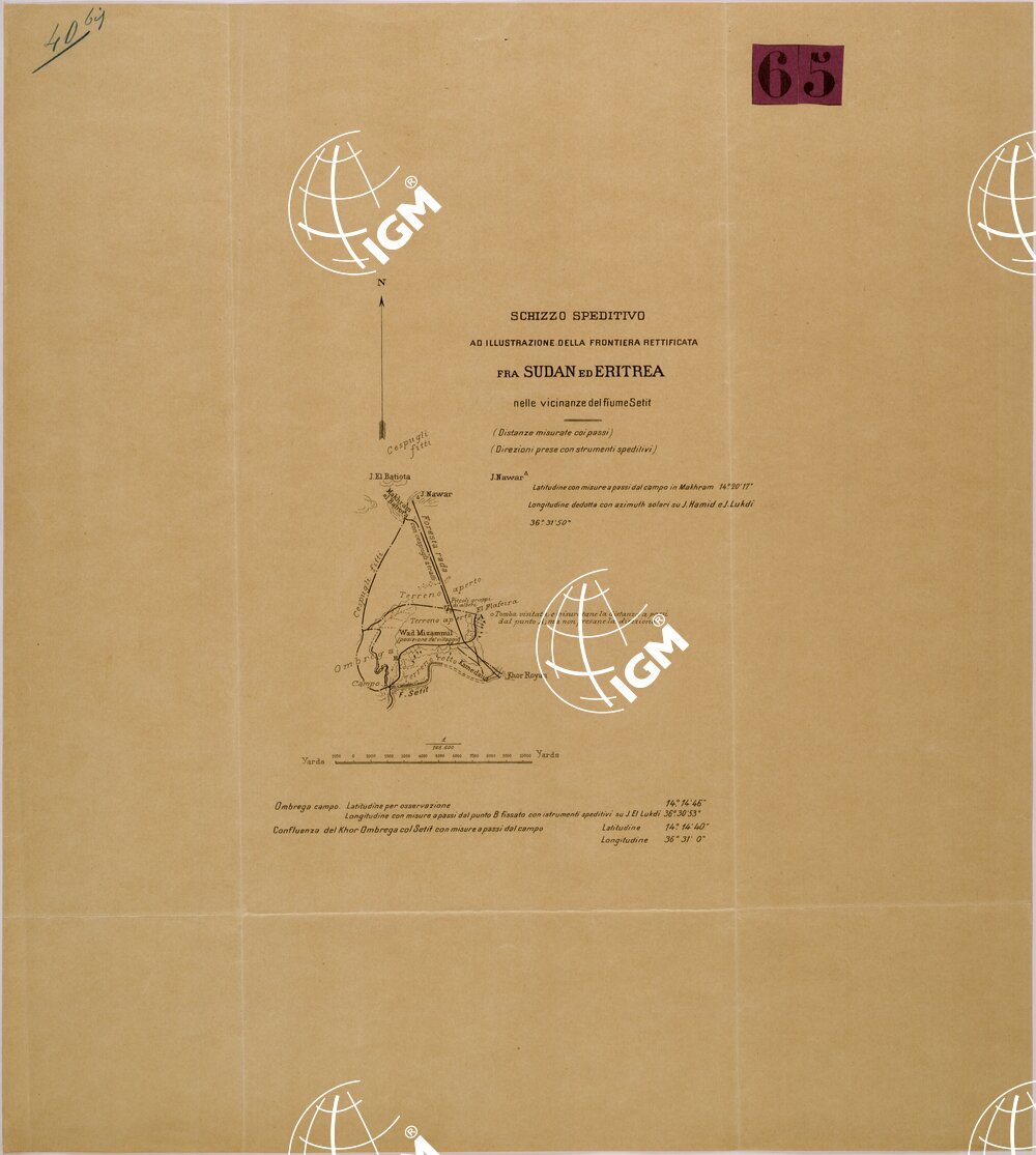 Schizzo della frontiera nelle vicinanze del Fiume Setit, le distanze sono misurate con i passi.