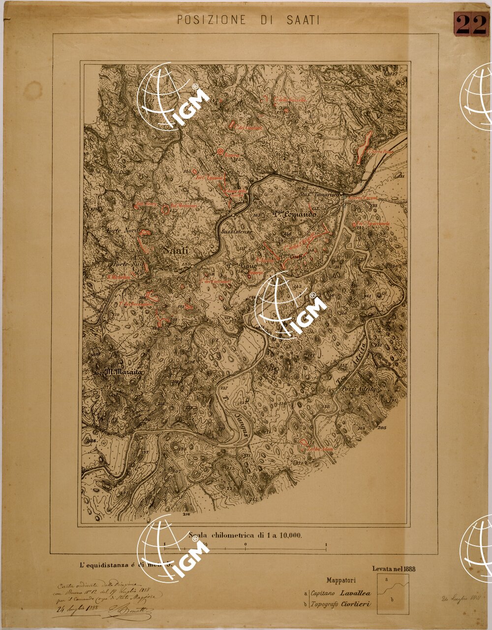 | Note foto | Carta realizzata per il Comando del Corpo di Stato Maggiore, in rosso le opere militari. |