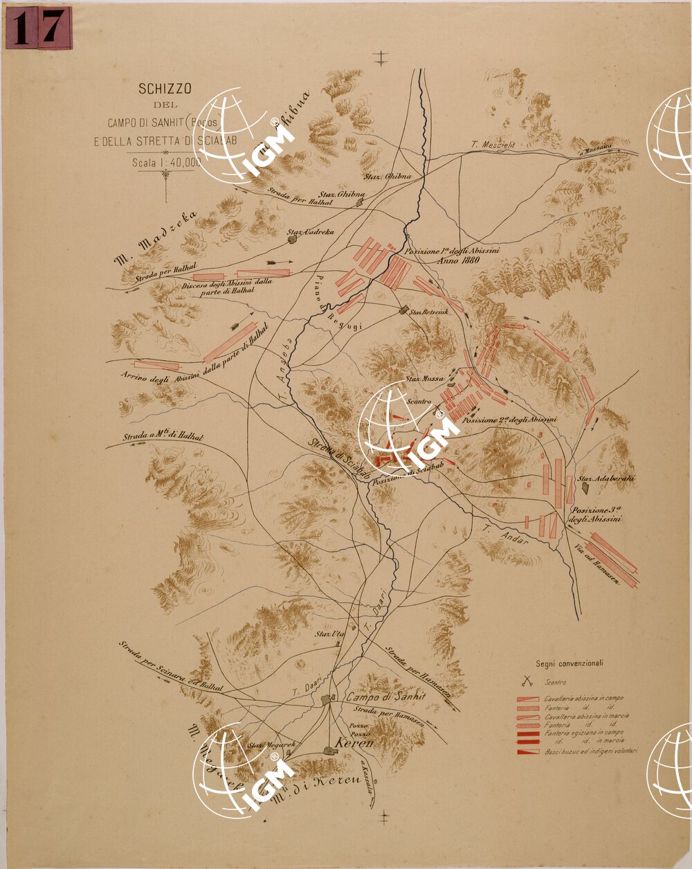 La carta rappresenta il piano di battaglia dei Reparti Abissini ed Egiziani.