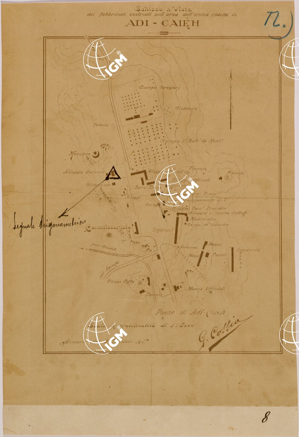 Copia eliografica dello schizzo a vista dei fabbricati costruiti sull’ area dell’ antica ridotta di Adi Caieh.