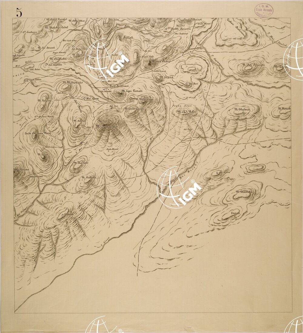 Schizzo dimostrativo realizzato usando come fonte di compilazione la Carta della Battaglia di Adua alla scala di 1:90.000 del Dottor Pollera e aggiornato da documenti vari in possesso dell’ IGM e da fotografie panoramiche ed aeree della regione di Adua.