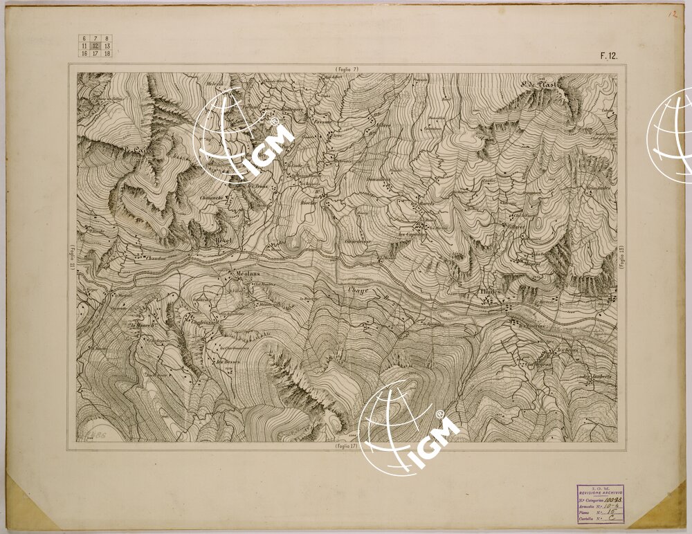 disegnata a penna su cartone la carta è stata compilata mediante ingrandimento dei rilievi al 50.000 per la parte Italiana e della ” carte de la frontiere des alpes ” alla scala di 80.000 per il territorio Francese.