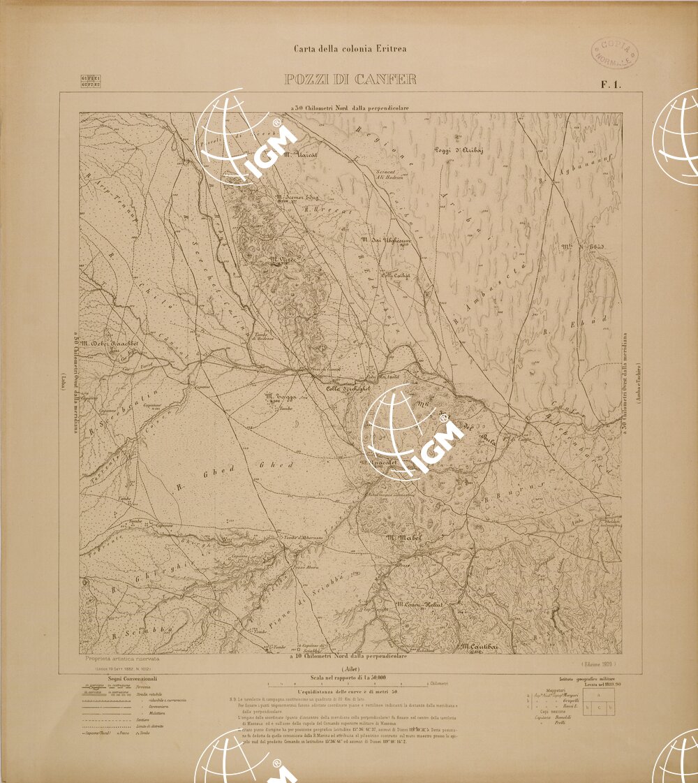 | Titolo proprio | CARTA DELLA COLONIA ERITREA – FOGLIO F1 – POZZI DI CANFER |