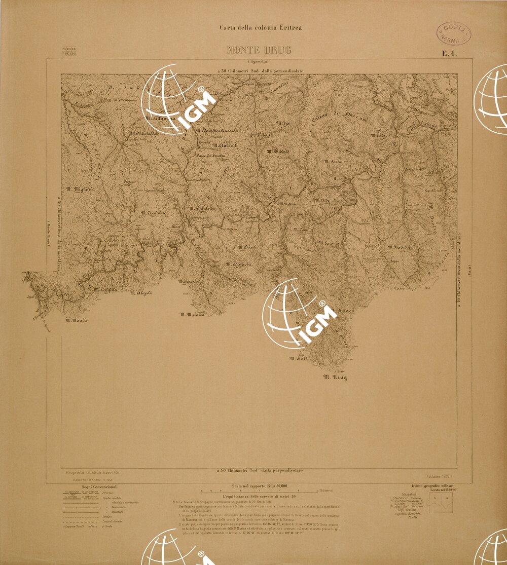 | Titolo proprio | CARTA DELLA COLONIA ERITREA – FOGLIO E4 – MONTE URUG |