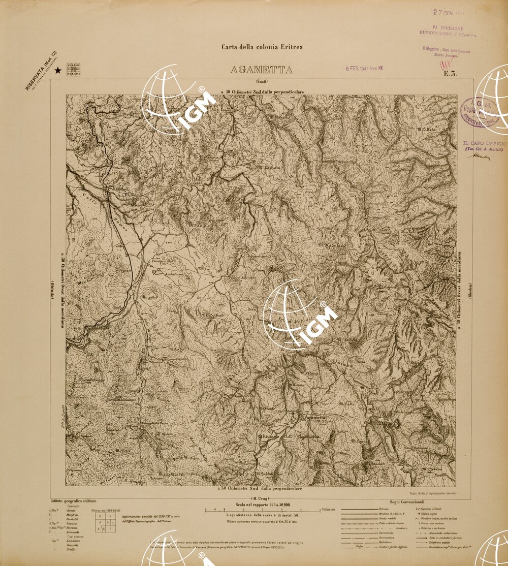 CARTA DELLA COLONIA ERITREA – FOGLIO E3 – AGAMETTA