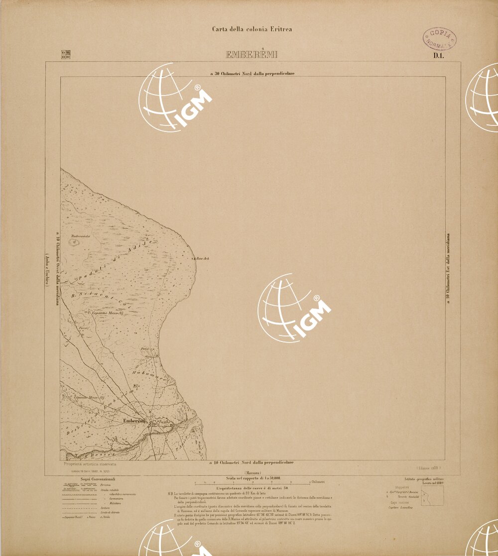 | Titolo proprio | CARTA DELLA COLONIA ERITREA – FOGLIO D1 – EMBEREMI |