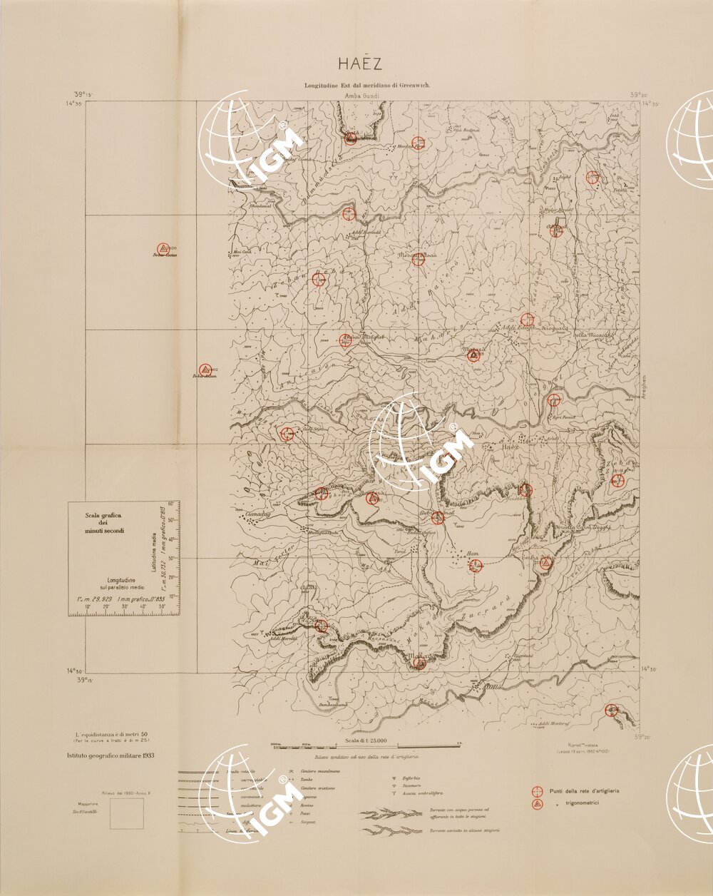 | Titolo proprio | CARTA DELL'ERITREA – FOGLIO 2063 I SE – HAEZ – COPIA CON I PUNTI D'ARTIGLIERIA IN ROSSO |