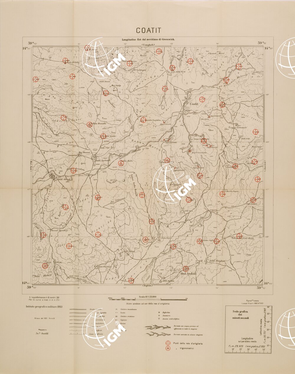 | Titolo proprio | CARTA DELL'ERITREA – FOGLIO 1963 II NO – COATIT – COPIA CON I PUNTI D'ARTIGLIERIA |