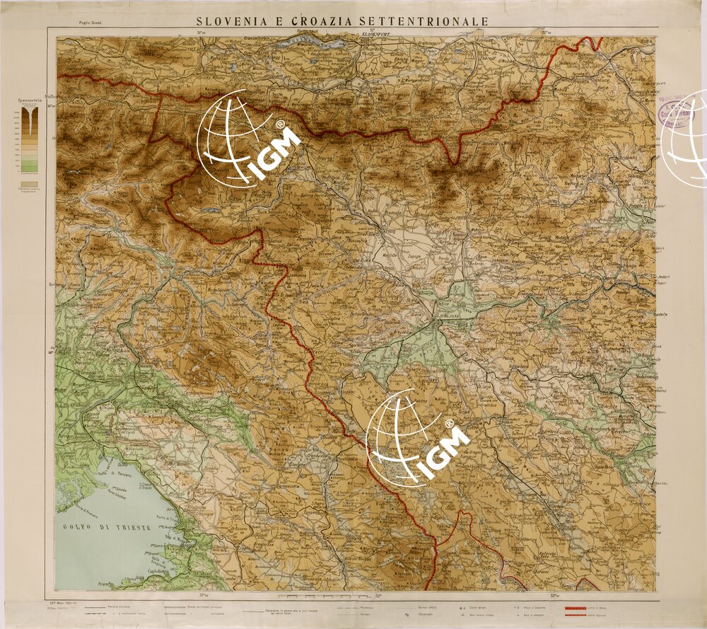 Carta dimostrativa dei territori limitrofi alla frontiera nord – orientale in due fogli ( Est – Ovest ) realizzata dall’ Ufficio Monografie dell’ IGM