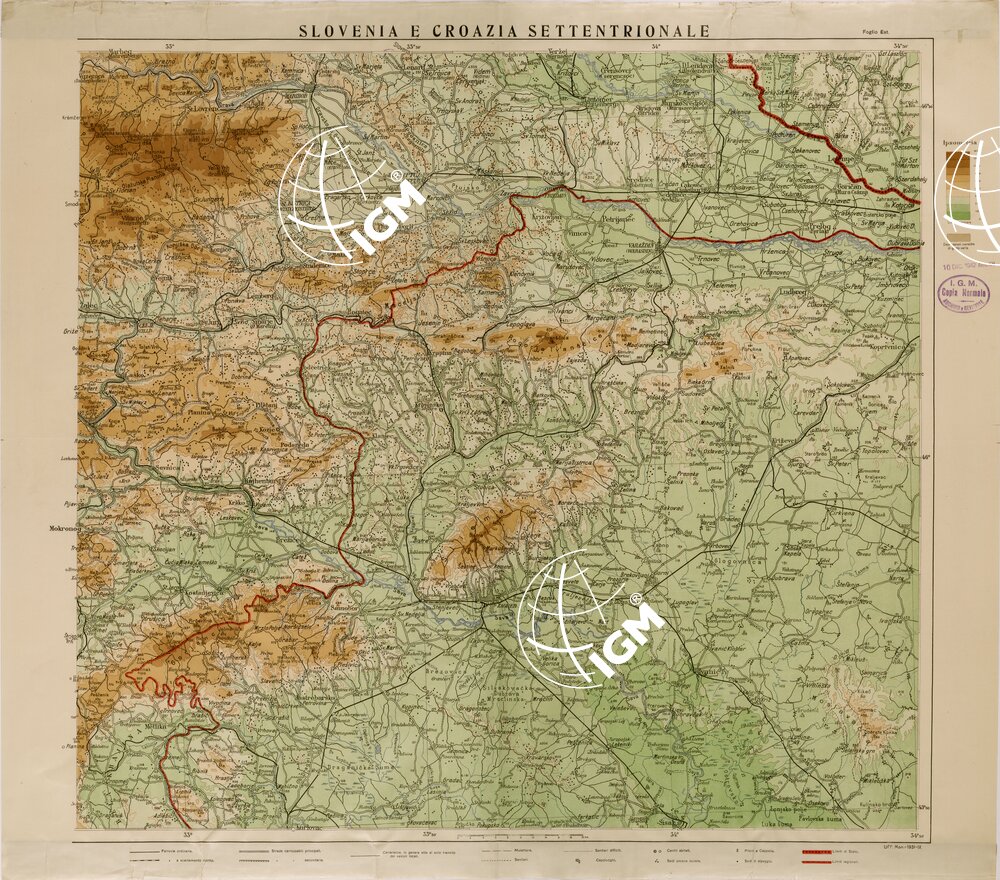 Carta dimostrativa dei territori limitrofi alla frontiera nord – orientale in due fogli ( Est – Ovest ) realizzata dall’ Ufficio Monografie dell’ IGM