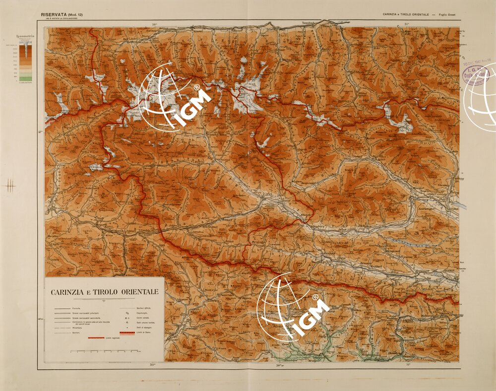 Carta dimostrativa dei territori limitrofi alla frontiera nord – orientale in due fogli ( Est – Ovest ) realizzata dall’ Ufficio Monografie dell’ IGM