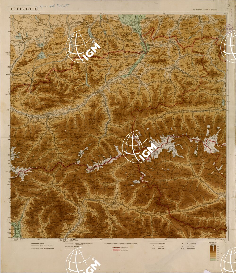 Carta dimostrativa dei territori limitrofi alla frontiera nord – orientale in due fogli ( Est – Ovest ) realizzata dall’ Ufficio Monografie dell’ IGM