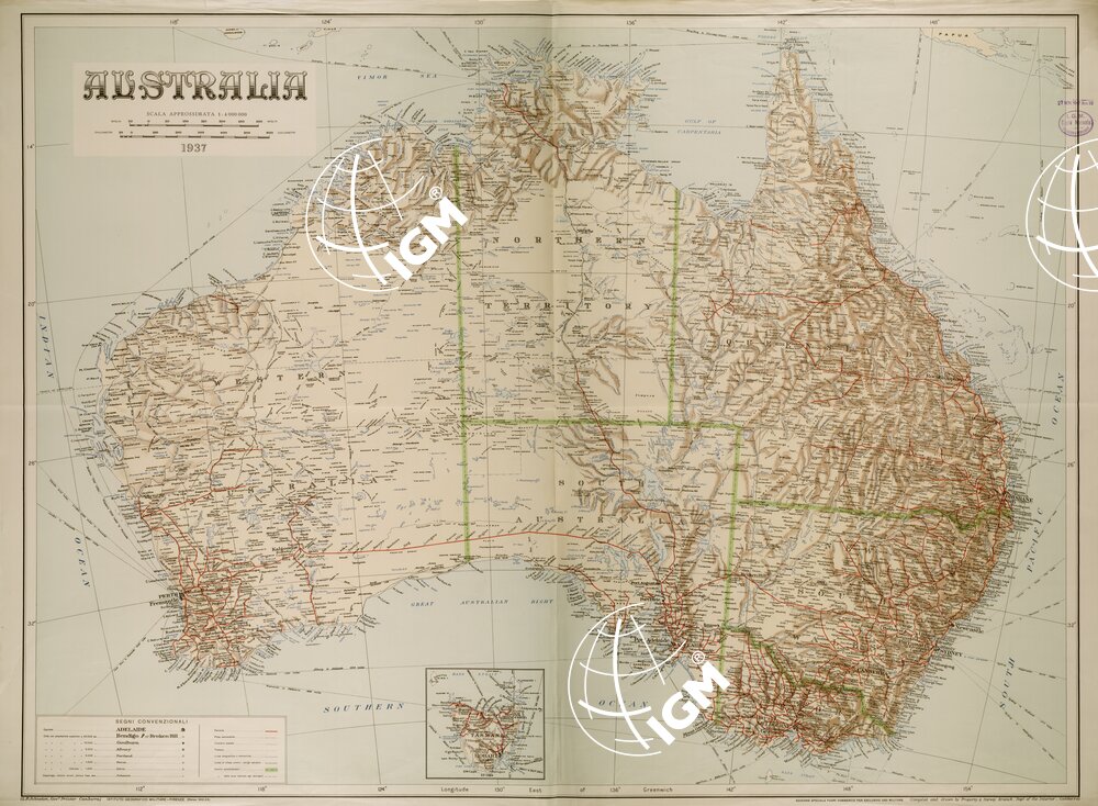 Carta compilata nel 1937 dal dipartimento dell’ interno di Canberra, riprodotta dall’ IGM e stampata nel 1942