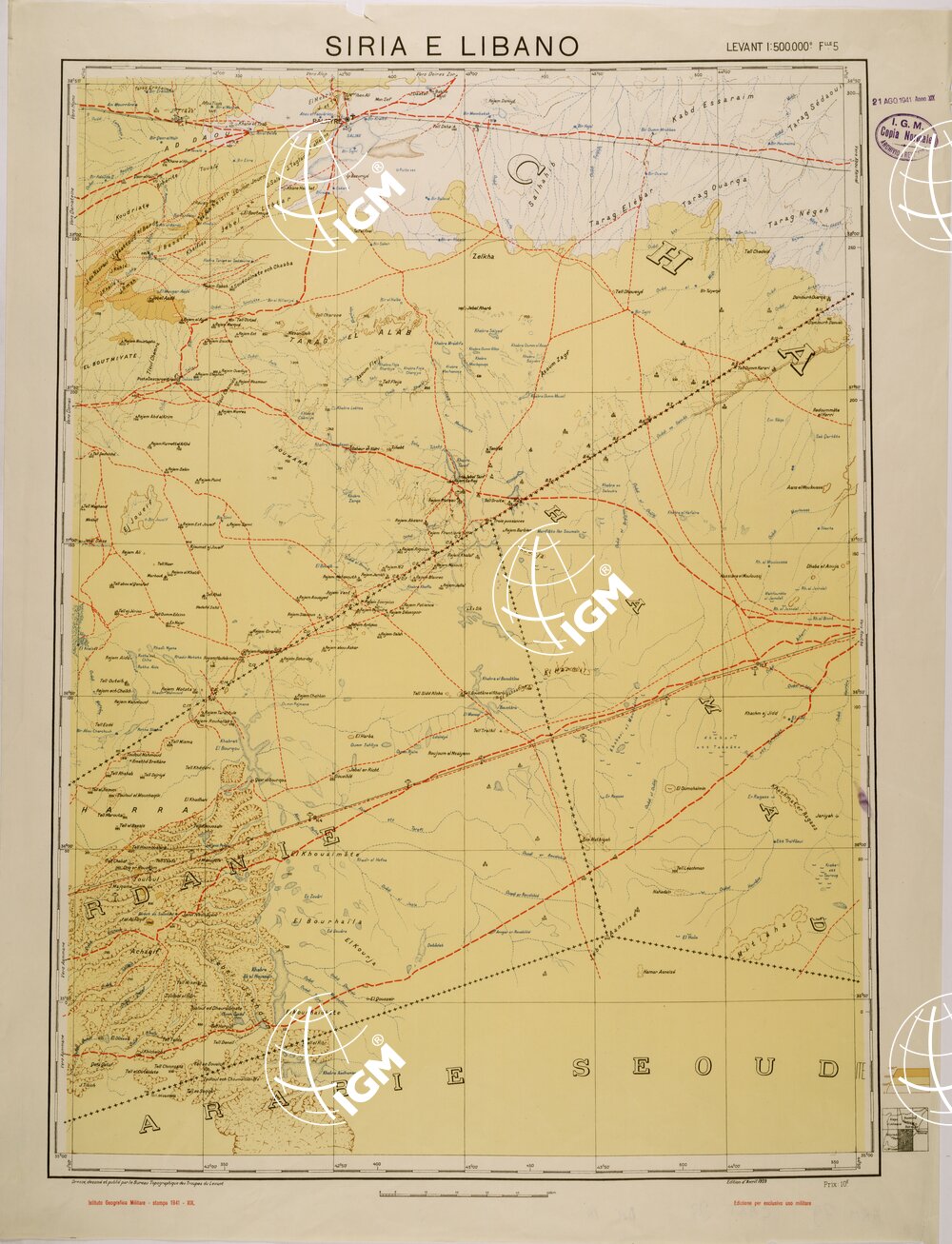 Riproduzione da analoga carta del Bureau Topographique des Troupes du Levant Francese stampa IGM 1941
