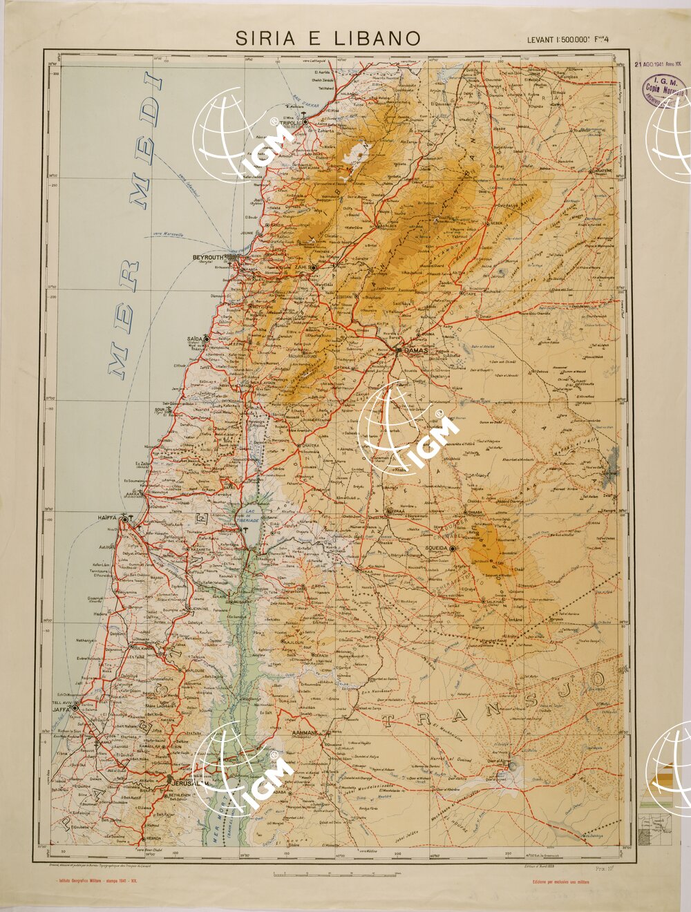 Riproduzione da analoga carta del Bureau Topographique des Troupes du Levant Francese stampa IGM 1941