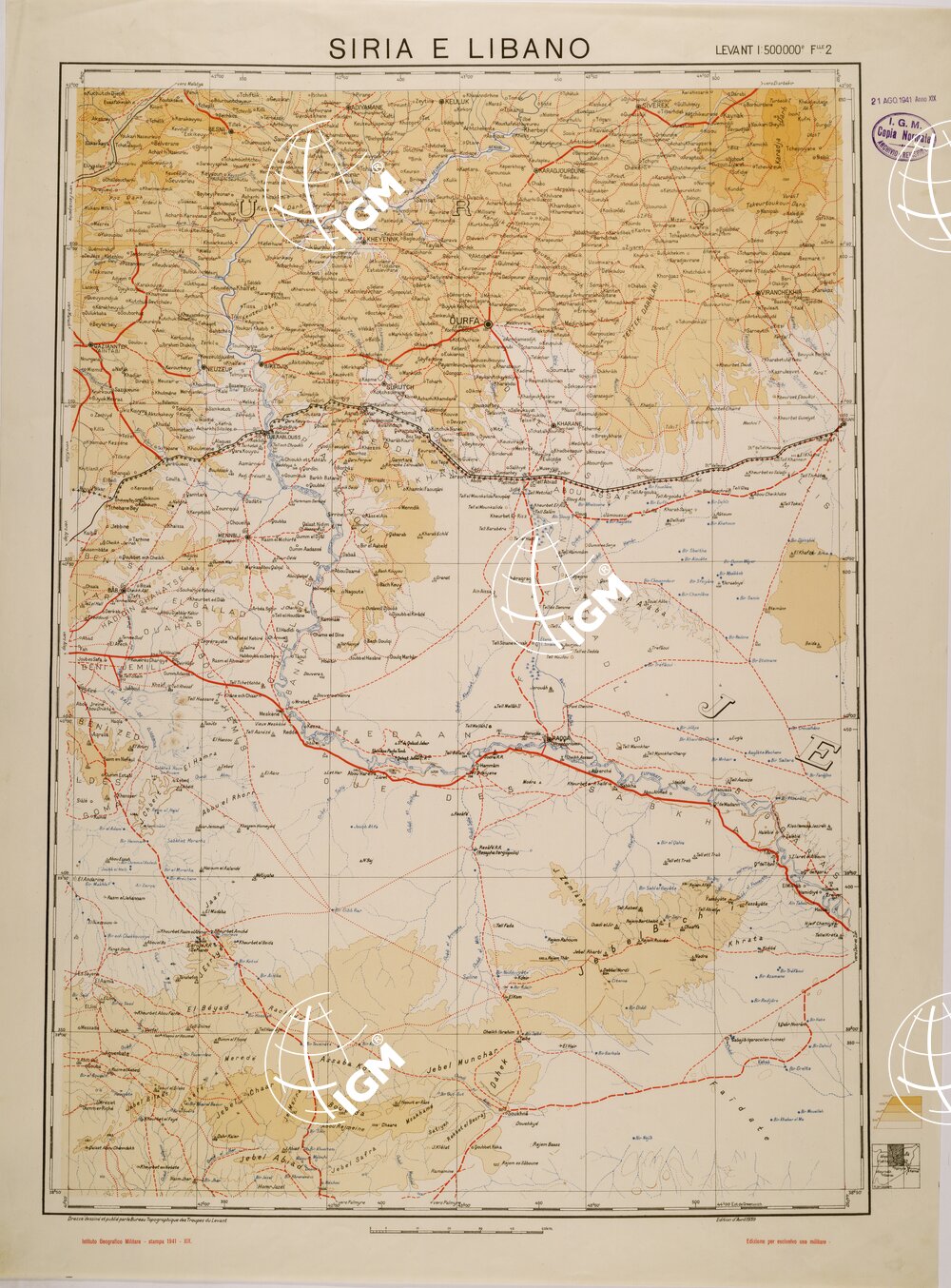 Riproduzione da analoga carta del Bureau Topographique des Troupes du Levant Francese stampa IGM 1941