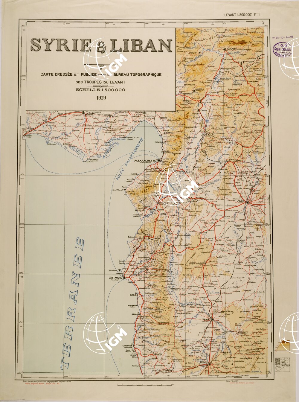 Riproduzione da analoga carta del Bureau Topographique des Troupes du Levant Francese stampa IGM 1941