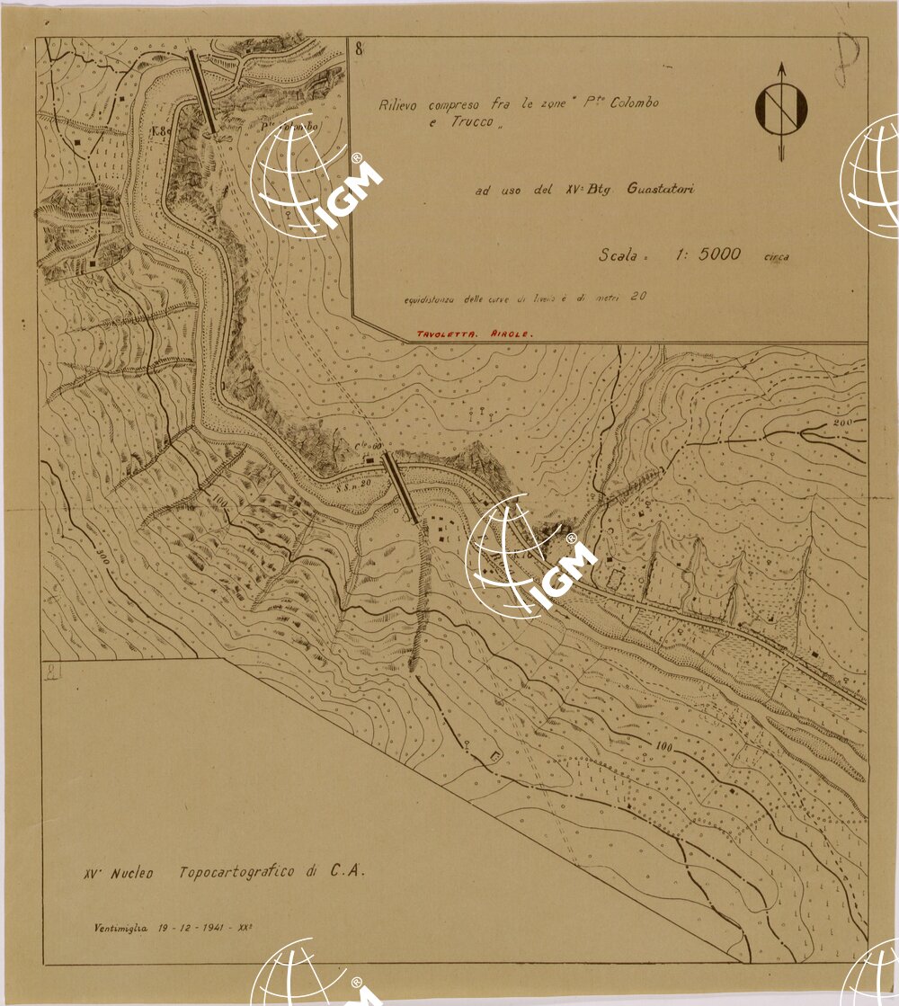 | Note foto | Copia eliografica realizzata dal XV Nucleo Topocartografico di C.A. per il XV Battaglione Guastatori. |