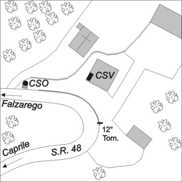 [{"simbolo_contrassegno":"B2","materializzazione":"(CSO) – Borchia (UIMA 195) infissa sul bordo del tombino, a sinistra della SR 48 in direzione Caprile."},{"simbolo_contrassegno":"V1","materializzazione":"(CSV) – Mensola (UIMA 195) infissa sulla facciata Ovest della casa a fianco della chiesetta."}]