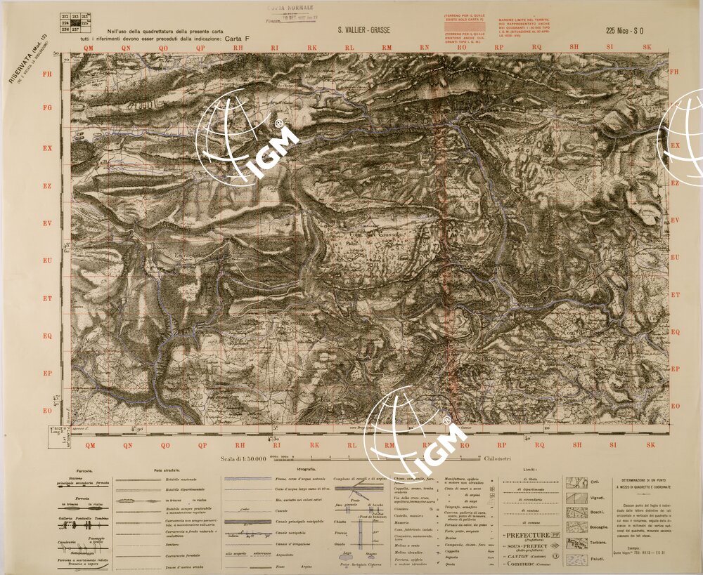 Carta realizzata dall’ IGM mediante ingrandimento della carta alla scala di 1:80.000 dell’ Istituto Geografico Francese, edizione 1936 stampa 1937