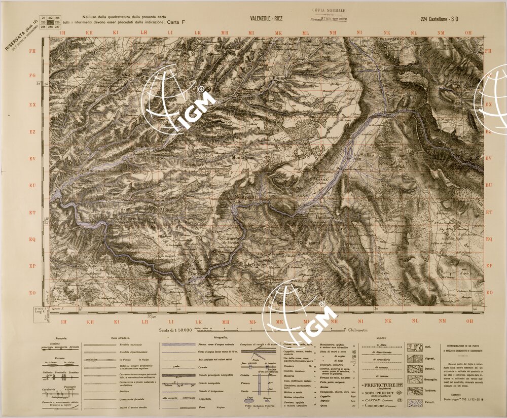 Carta realizzata dall’ IGM mediante ingrandimento della carta alla scala di 1:80.000 dell’ Istituto Geografico Francese, edizione 1936 stampa 1937