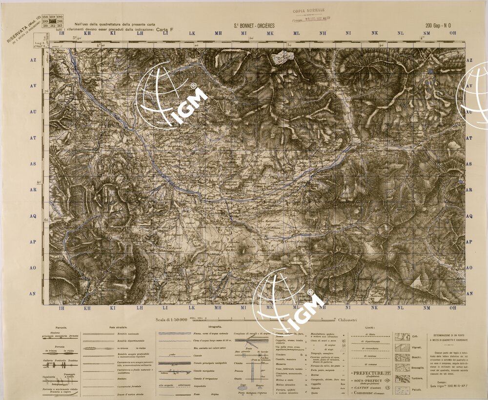 Carta realizzata dall’ IGM mediante ingrandimento della carta alla scala di 1:80.000 dell’ Istituto Geografico Francese, edizione 1936 stampa 1937