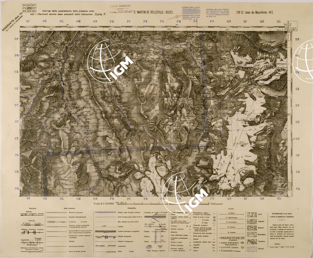 Carta realizzata dall’ IGM mediante ingrandimento della carta alla scala di 1:80.000 dell’ Istituto Geografico Francese, edizione 1936 stampa 1937