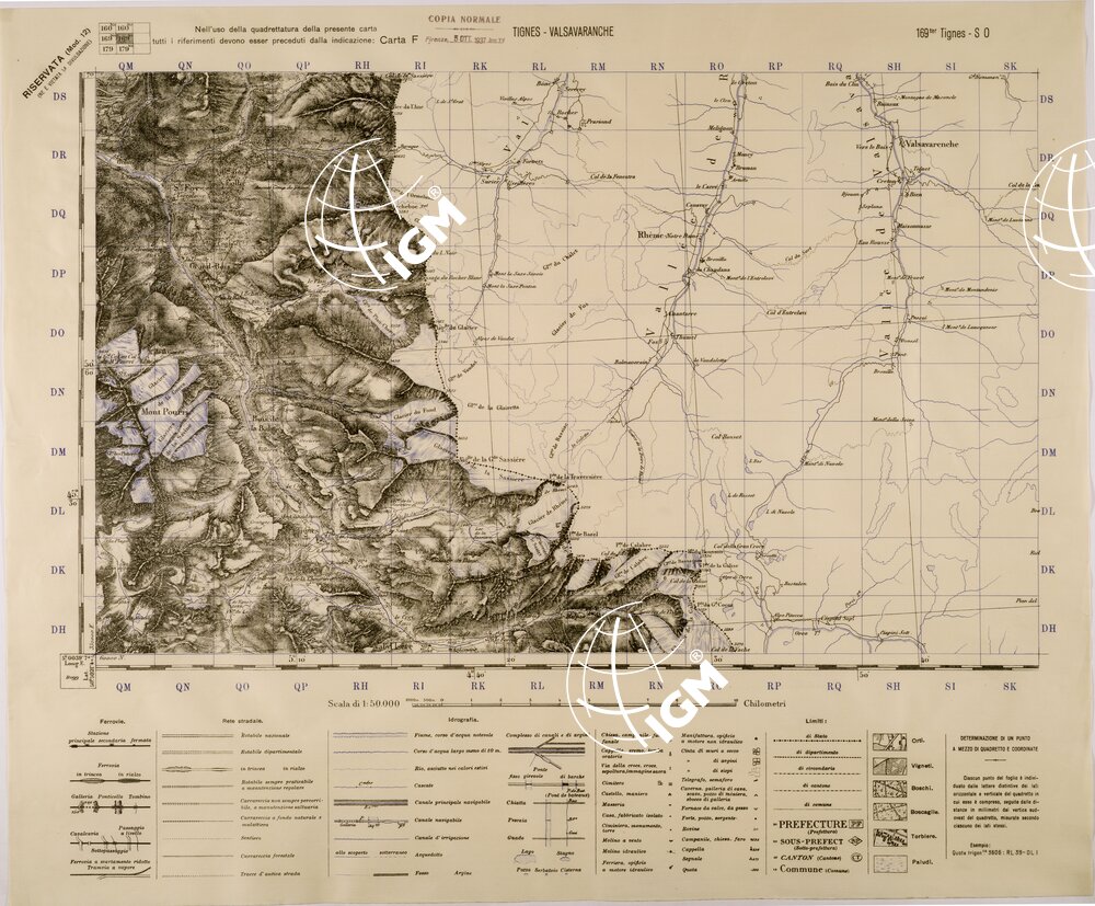 Carta realizzata dall’ IGM mediante ingrandimento della carta alla scala di 1:80.000 dell’ Istituto Geografico Francese, edizione 1936 stampa 1937