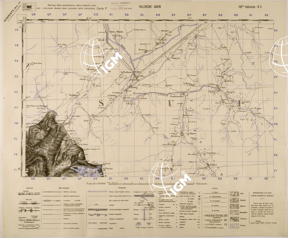 Carta realizzata dall’ IGM mediante ingrandimento della carta alla scala di 1:80.000 dell’ Istituto Geografico Francese, edizione 1936 stampa 1937
