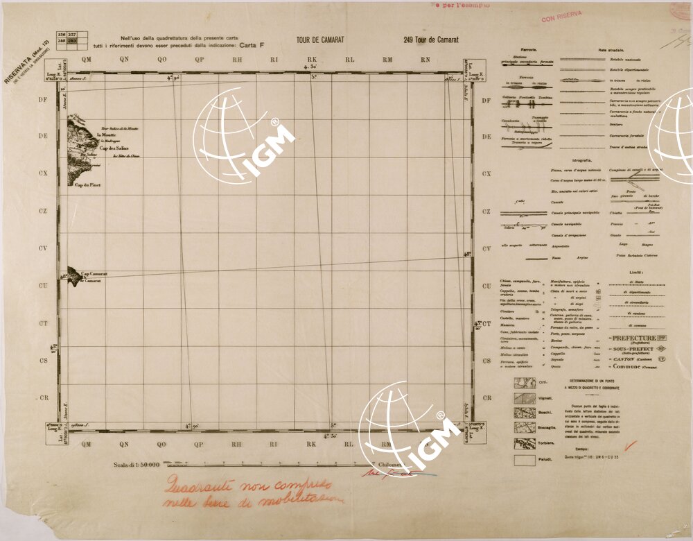 Carta realizzata dall’ IGM mediante ingrandimento della carta alla scala di 1:80.000 dell’ Istituto Geografico Francese, edizione 1936 stampa 1937