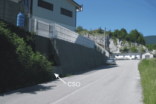 [{"simbolo_contrassegno":"B1","materializzazione":"(CSO) – Bullone infisso nel tombino lato strada, posto alla base di un alto muro di contenimento"}]