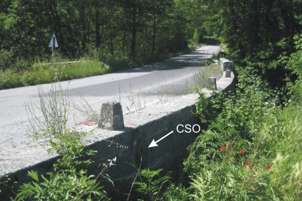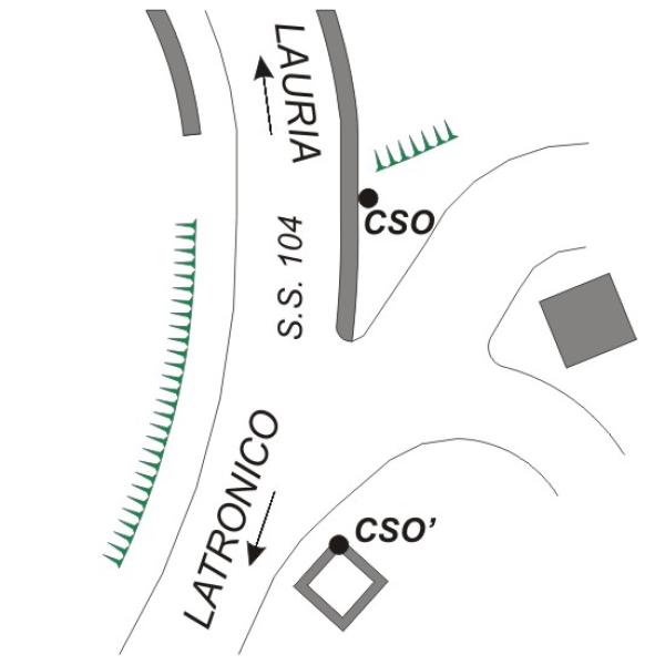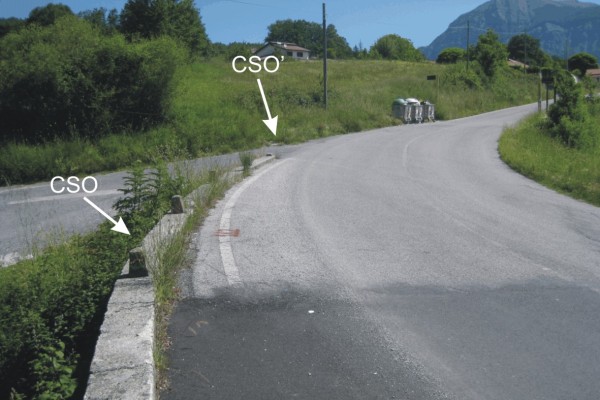 | Contrassegni | [{"simbolo_contrassegno":"B1","materializzazione":"(CSO) – Bullone infisso nel muro di contenimento della sede stradale, a 2 metri dal bivio"},{"simbolo_contrassegno":"B4","materializzazione":"(CSO') – Centrino universale infisso sul bordo del tombino, posto in corrispondenza dell'incrocio, lato monte"}] |