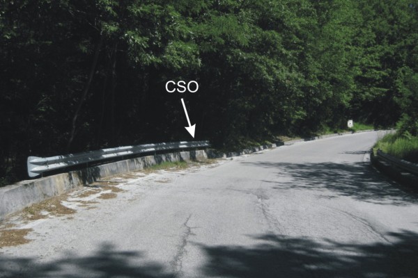 | Contrassegni | [{"simbolo_contrassegno":"B1","materializzazione":"(CSO) – Bullone infisso nel muro di contenimento della sede stradale, lato monte"}] |