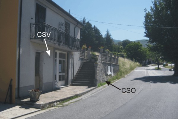 [{"simbolo_contrassegno":"B1","materializzazione":"(CSO) – Bullone infisso nel muro in pietra che sostiene la scalinata del civico n. 17"},{"simbolo_contrassegno":"V3","materializzazione":"(CSV) – Piastrina antica infissa sulla facciata, lato strada, a destra del civico n. 16"}]