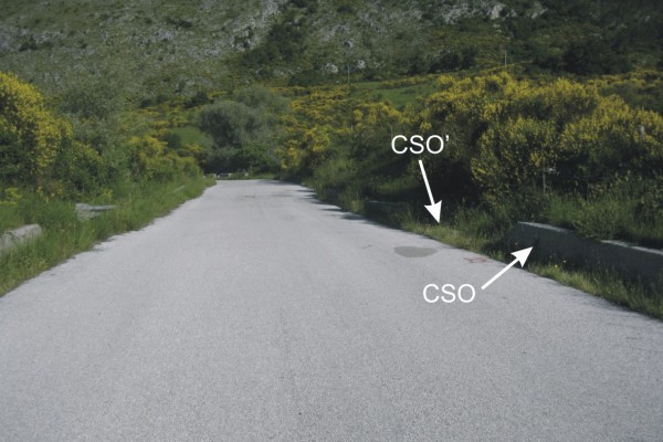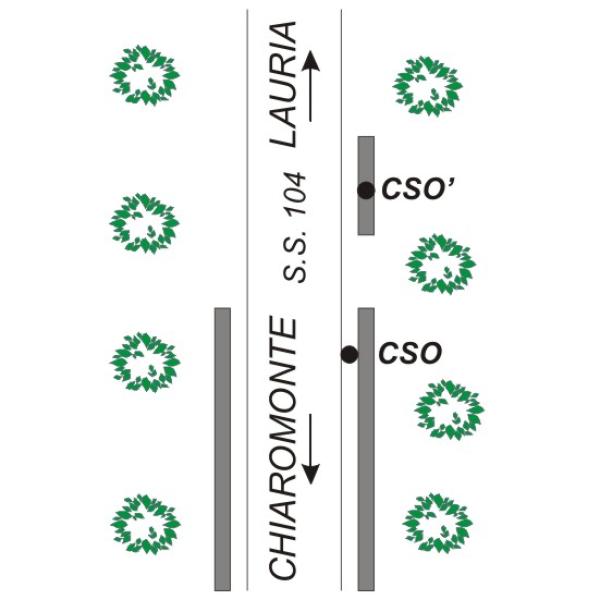 | Contrassegni | [{"simbolo_contrassegno":"B1","materializzazione":"(CSO) – Bullone infisso nel muretto in calcestruzzo, lato monte, a 1 metro dalla testata, direzione Lauria"},{"simbolo_contrassegno":"B4","materializzazione":"(CSO') – Centrino universale infisso sulla sommit\u00e0 del cordolo di ancoraggio del guard-rail, lato monte"}] |