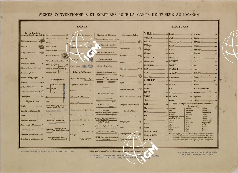 SIGNES CONVENTIONNELS ET ECRITURES POUR LA CARTE DE TUNISIE