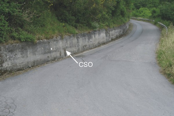 [{"simbolo_contrassegno":"B1","materializzazione":"(CSO) – Bullone infisso nel muro di scarpa posto sul lato monte del bivio per Contrada Demanio"}]