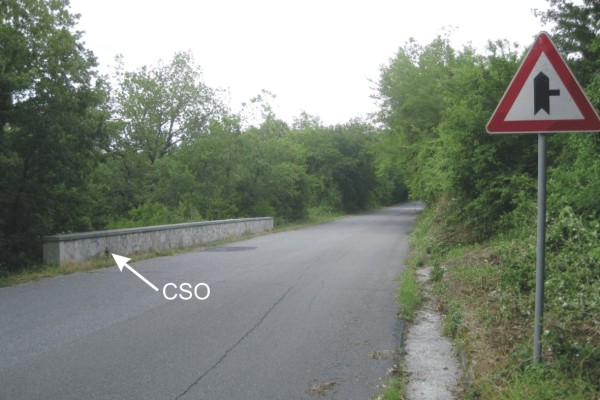 | Contrassegni | [{"simbolo_contrassegno":"B1","materializzazione":"(CSO) – Bullone infisso nel muro che delimita la sede stradale, lato valle"}] |