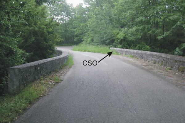 | Contrassegni | [{"simbolo_contrassegno":"B1","materializzazione":"(CSO) – Bullone infisso nel parapetto del ponte, a monte, lato strada, a 2 metri dalla testata, sull'ala rientrante"}] |