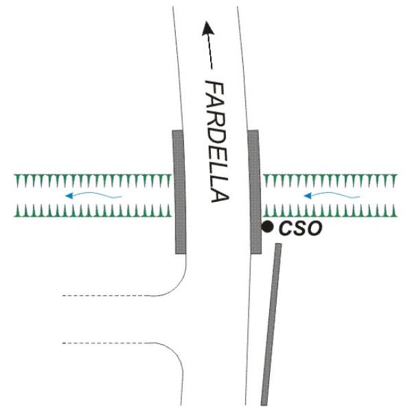 | Contrassegni | [{"simbolo_contrassegno":"B1","materializzazione":"(CSO) – Bullone infisso nel lato a monte della spalletta del ponticello, lato monte, sponda sinistra"}] |