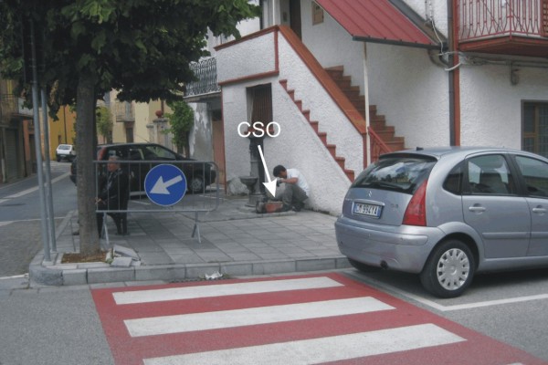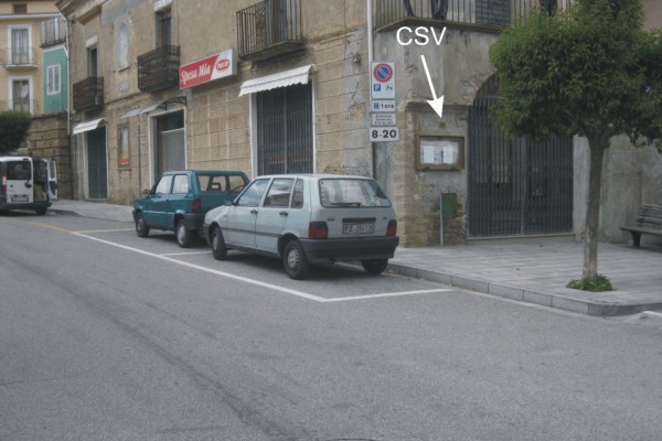 [{"simbolo_contrassegno":"B4","materializzazione":"(CSO) – Centrino universale infisso sul basamento in pietra della fontanella pubblica in ghisa, lato strada"},{"simbolo_contrassegno":"V3","materializzazione":"(CSV) – Piastrina antica infissa in prossimit\u00e0 dello spigolo sinistro della facciata dell'abitazione De Salvi"}]