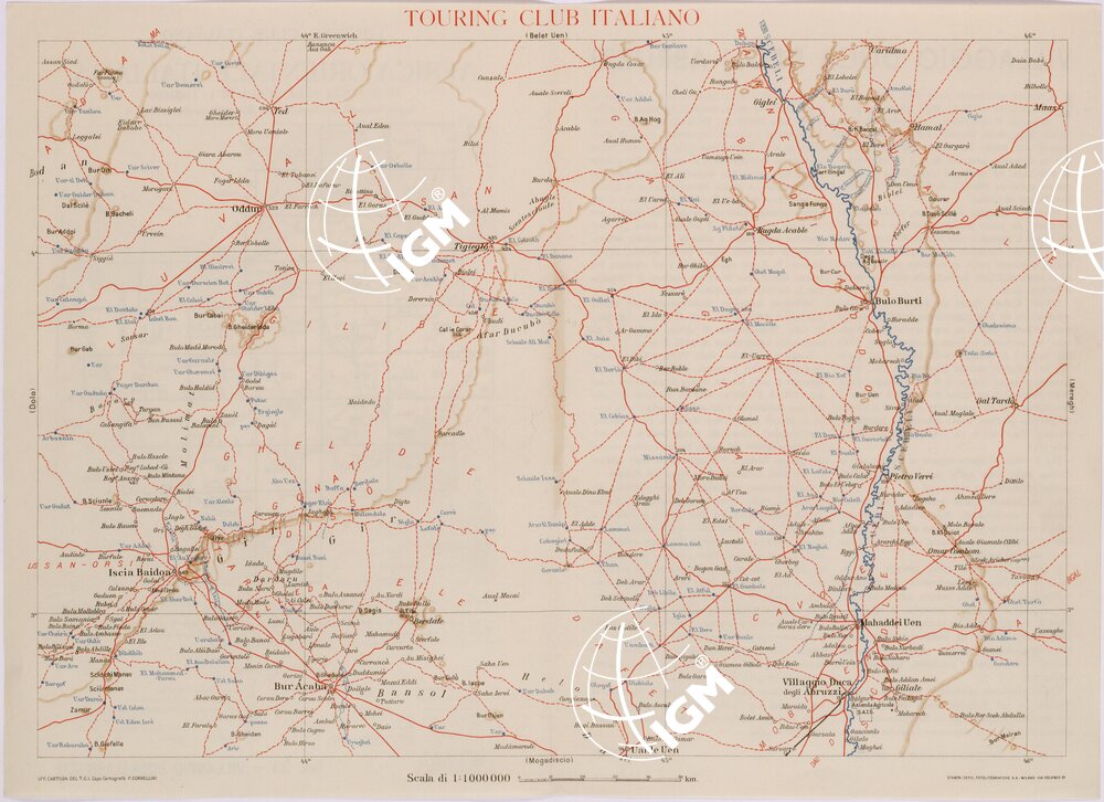 CARTA DELL’AFRICA ORIENTALE ITALIANA FOGLIO 33 VILLAGGIO DUCA DEGLI ABRUZZI