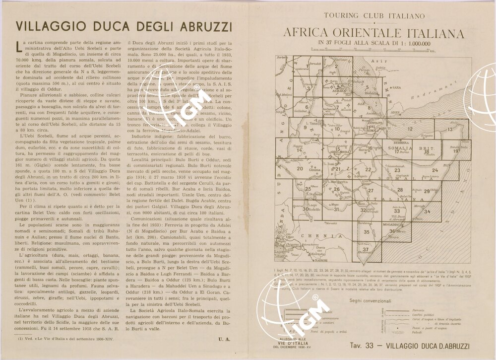 | Titolo proprio | CARTA DELL'AFRICA ORIENTALE ITALIANA FOGLIO 33 VILLAGGIO DUCA DEGLI ABRUZZI (RETRO) |