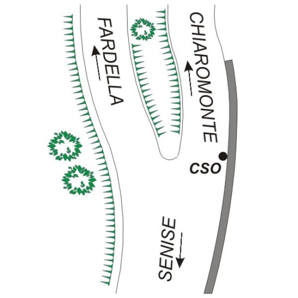 | Contrassegni | [{"simbolo_contrassegno":"B1","materializzazione":"(CSO) – Bullone infisso nel muro di controripa posto in prossimit\u00e0 del bivio Chiaromonte-Ospedale, lato monte"}] |