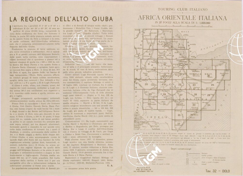 | Titolo proprio | CARTA DELL'AFRICA ORIENTALE ITALIANA FOGLIO 32 DOLO (RETRO) |