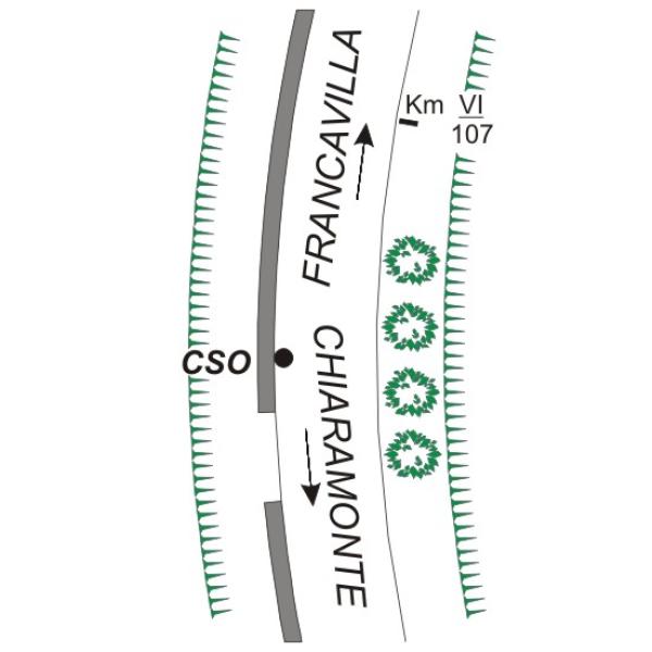 [{"simbolo_contrassegno":"B1","materializzazione":"(CSO) – Bullone infisso nel muro di controripa, lato destro, direzione Chiaromonte, a circa 150 metri dal bivio per Francavilla"}]