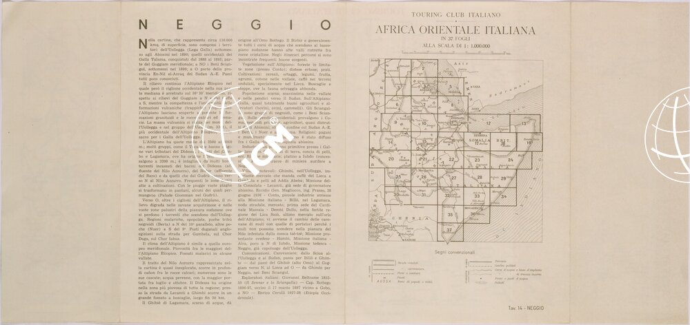 CARTA DELL'AFRICA ORIENTALE ITALIANA FOGLIO 14 NEGGIO (RETRO)