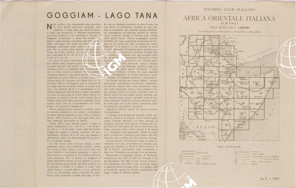 | Titolo proprio | CARTA DELL'AFRICA ORIENTALE ITALIANA FOGLIO 9 GOGGIAM LAGO TANA (RETRO) |