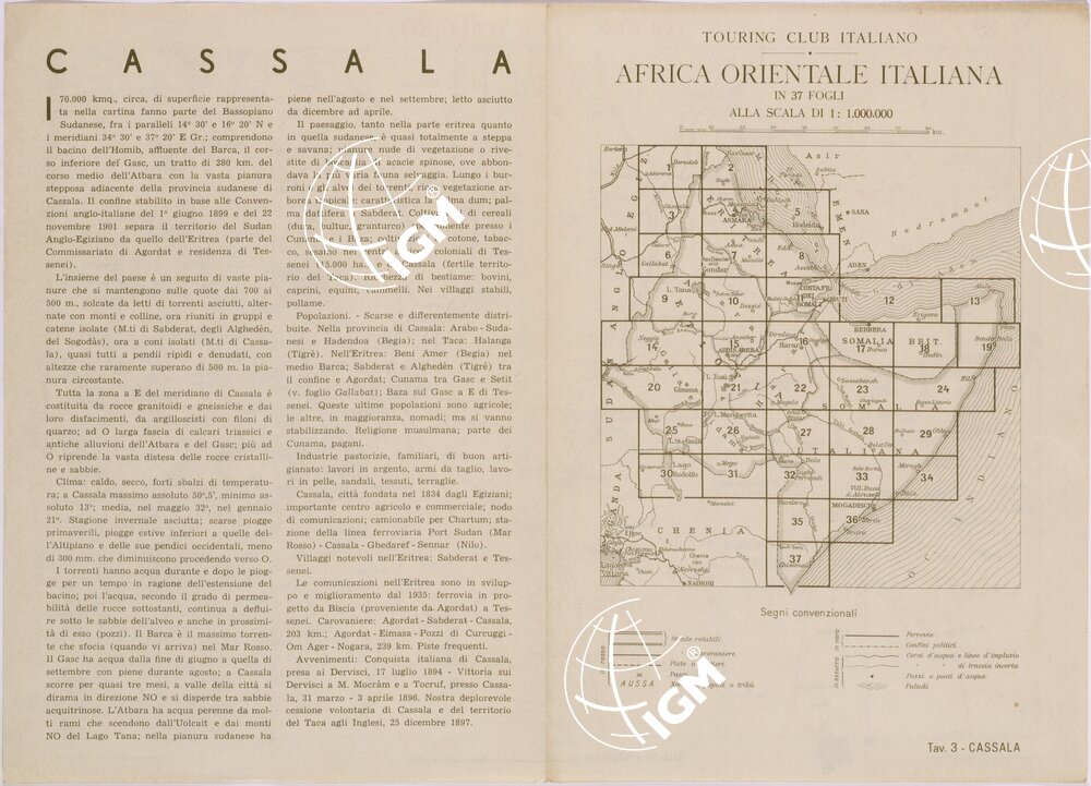 CARTA DELL’AFRICA ORIENTALE ITALIANA FOGLIO 3 CASSALA (RETRO)