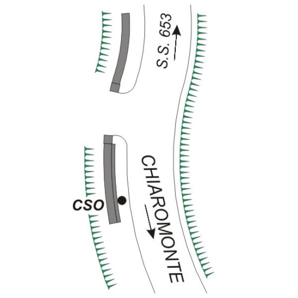 | Contrassegni | [{"simbolo_contrassegno":"B1","materializzazione":"(CSO) – Bullone infisso nella fondazione del muro di recinzione, a 1.5 metri dalla testata del muro, lato monte"}] |